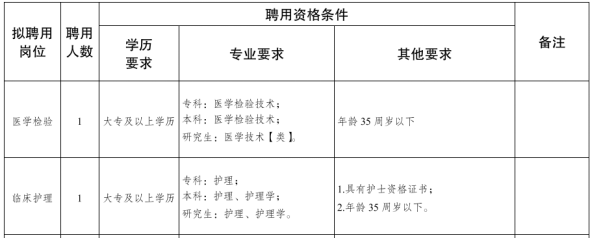 重庆市合川区肖家镇卫生院:非在编医学检验1名、临床护理1名。