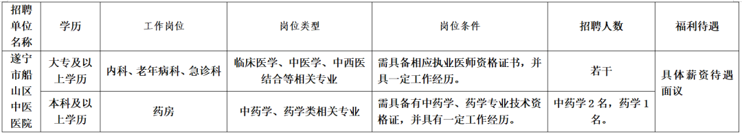 船山区中医医院招聘启事