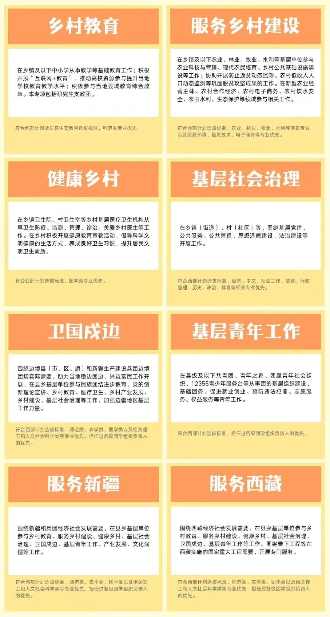 6.身心健康,符合所在院校毕业体检、西部计划项目体检及心理测试(一票否决制)要求,能胜任基层工作;